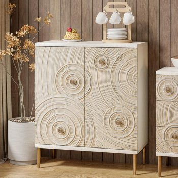 Farmhouse 2 Door Embossed Storage Cabinet with Boho Ring Motif